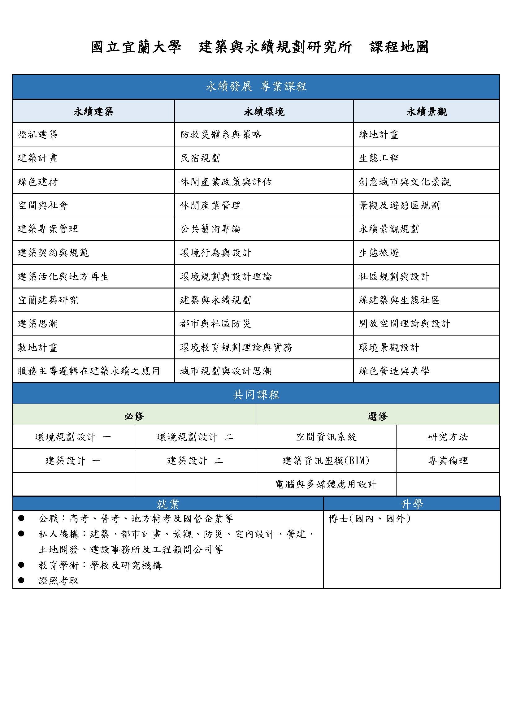 國立宜蘭大學 建築與永續規劃研究所 課程地圖